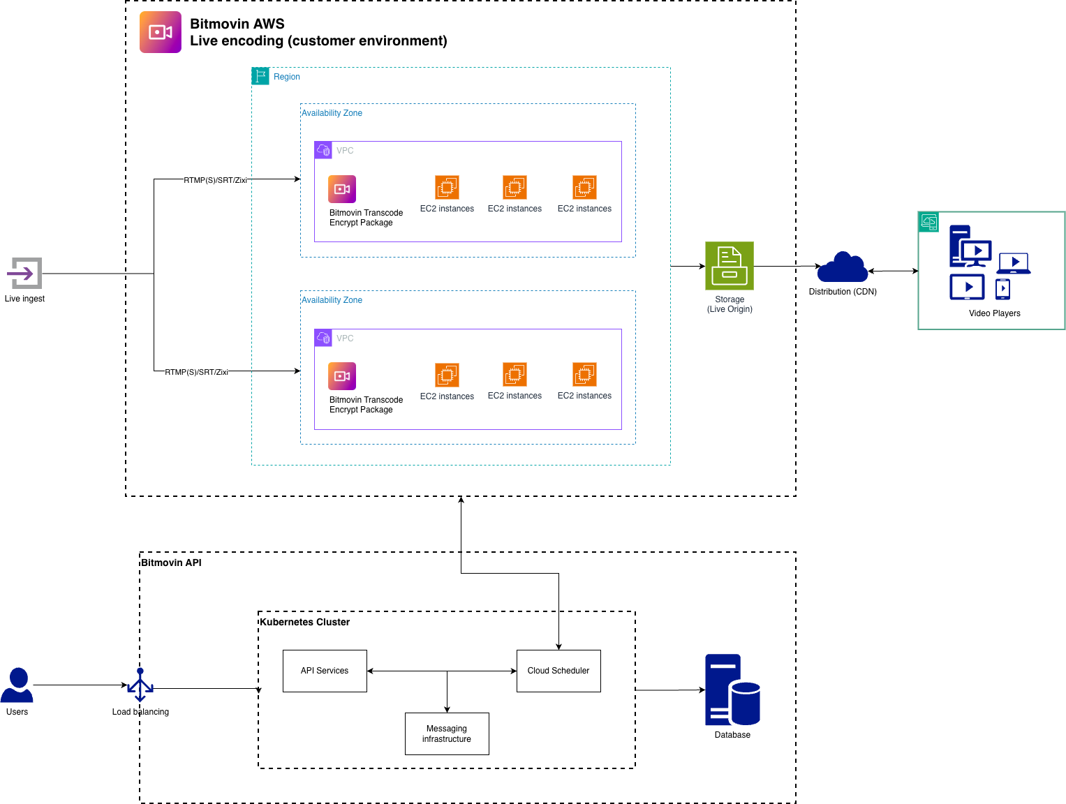 This document explains how to set up Bitmovin Encoding on AWS infrastructure so that the Bitmovin platform can run VOD / LIVE encoding jobs using the AWS EC2 API. Further details on those usecases can be found here